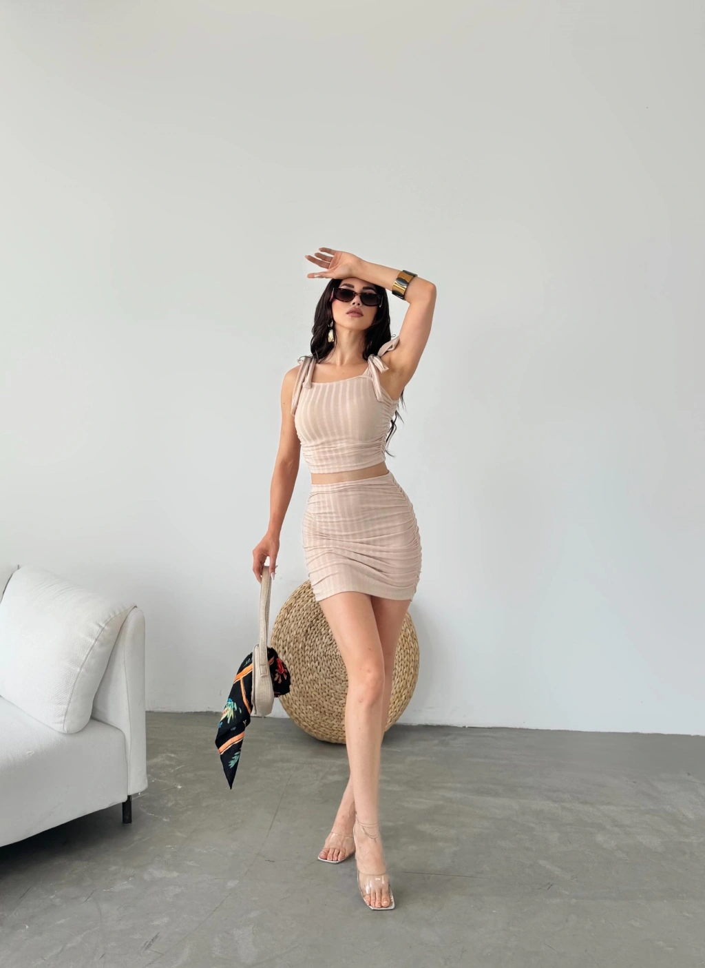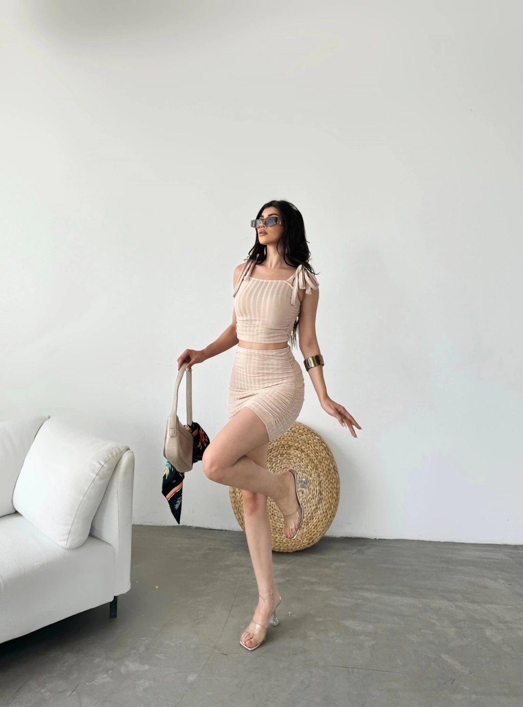 Bağcık Detaylı Crop Bluz Ve Etek İkili Takım