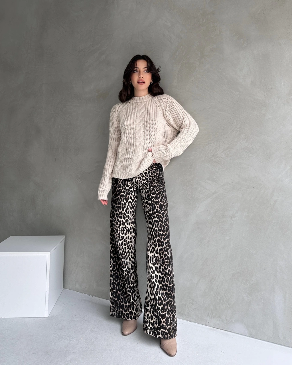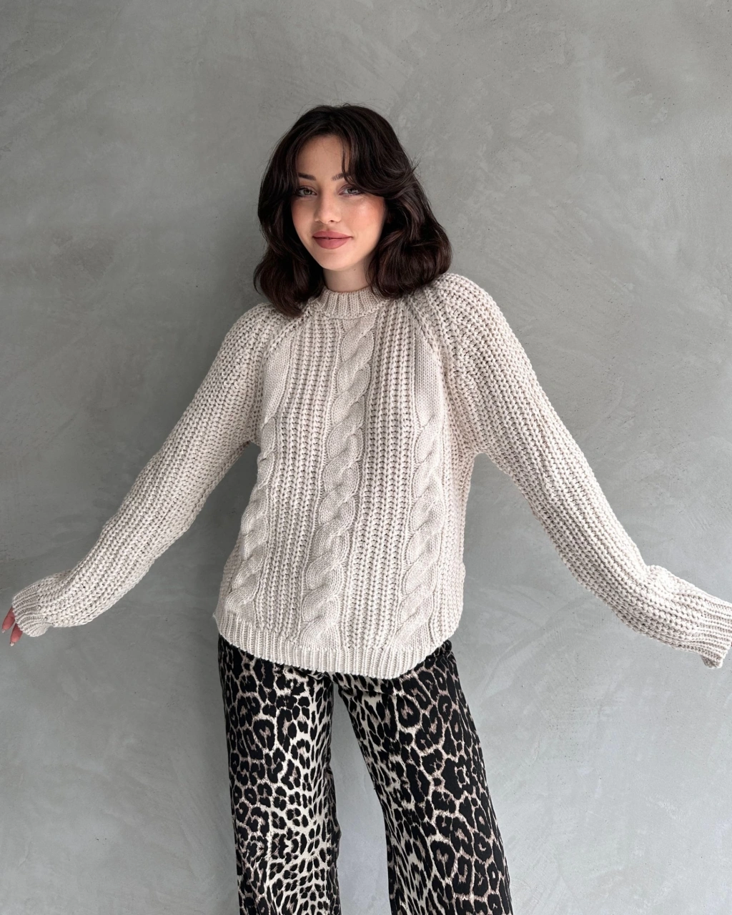 Bisiklet Yaka Örgü Desenli Triko Kazak