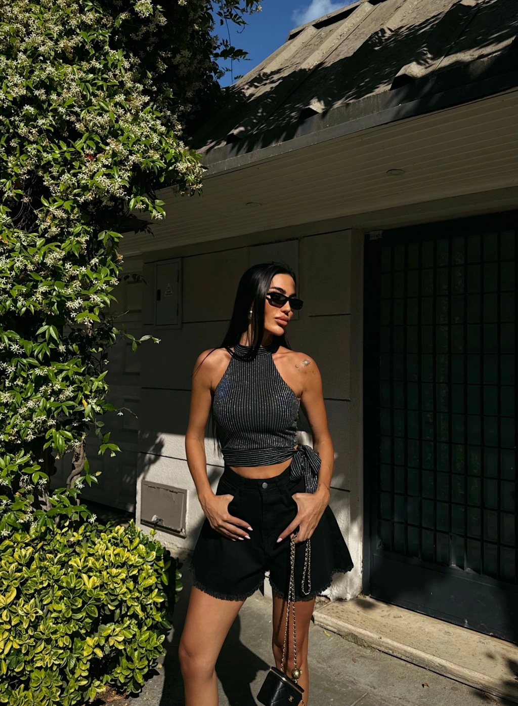 Düğmeli Mini Crop Bady Siyah - P-020494