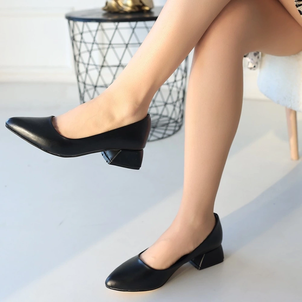 • Desniy Siyah Cilt Topuklu Ayakkabı