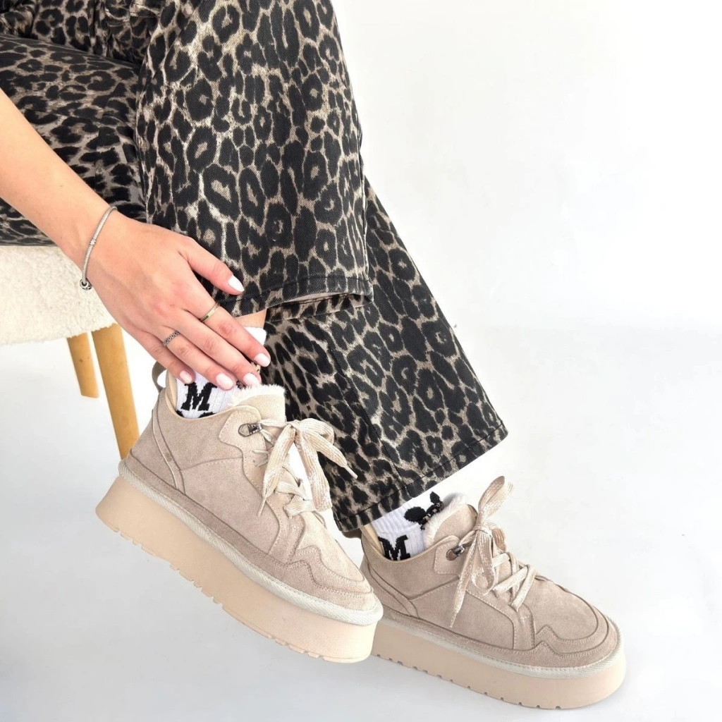 • Muden Bej Süet Bağcıklı Bot