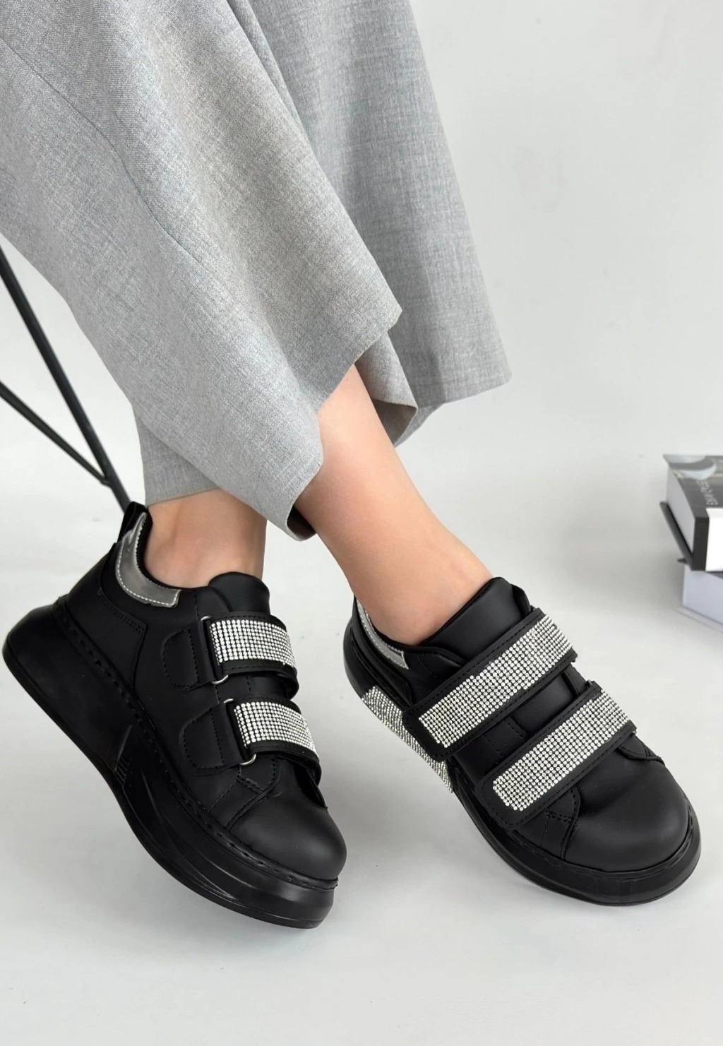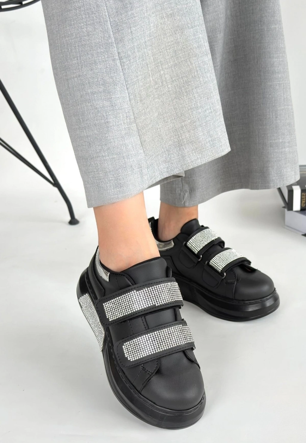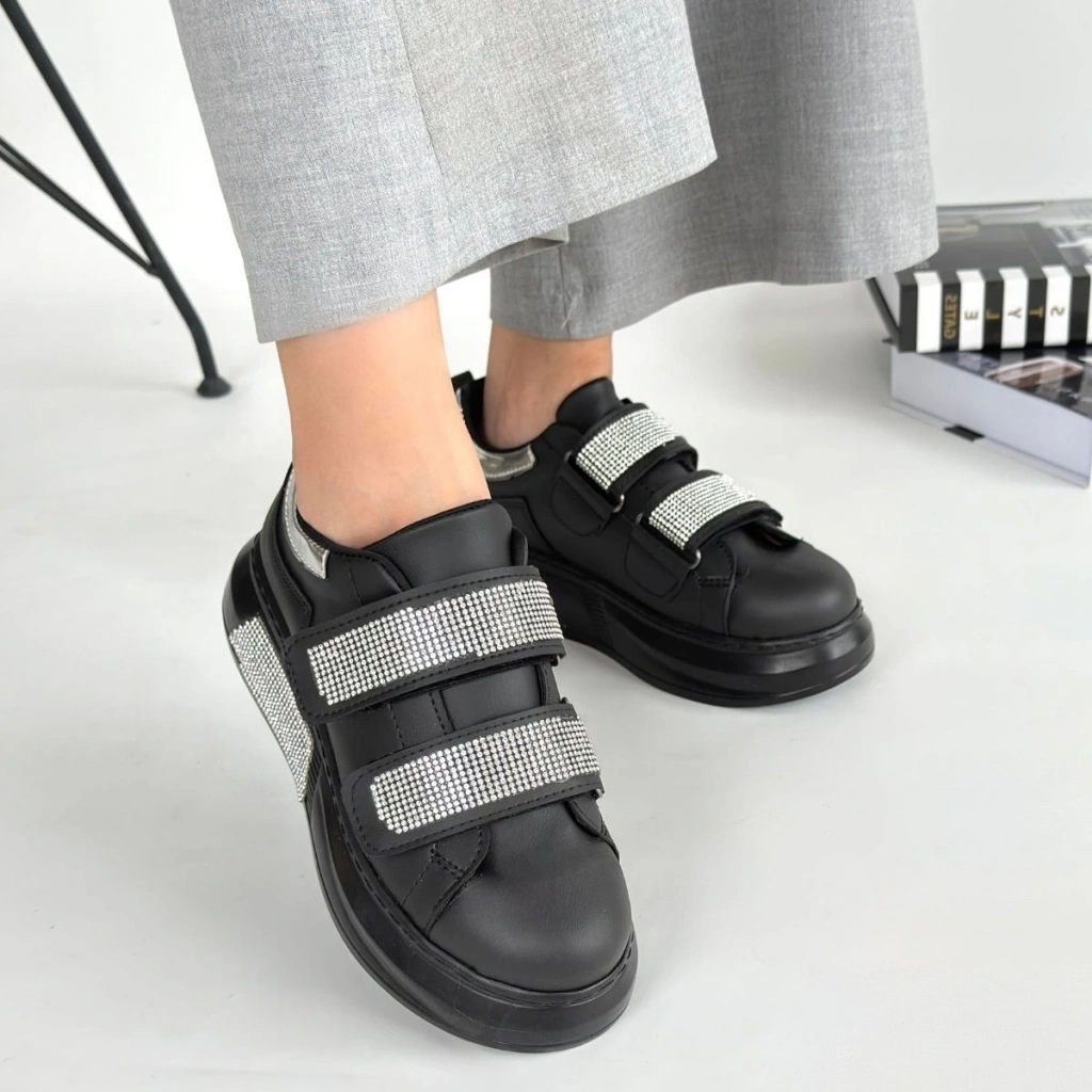 • Nino Siyah Cilt Cırt Cırtlı Spor Ayakkabı