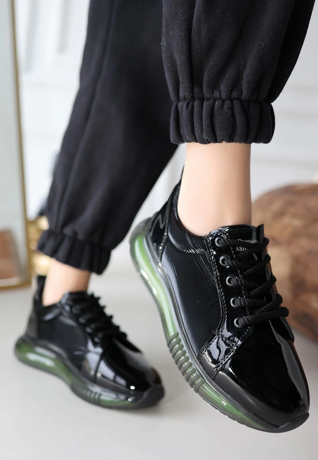 • Piona Siyah Rugan Yeşil Tabanlı Spor Ayakkabı