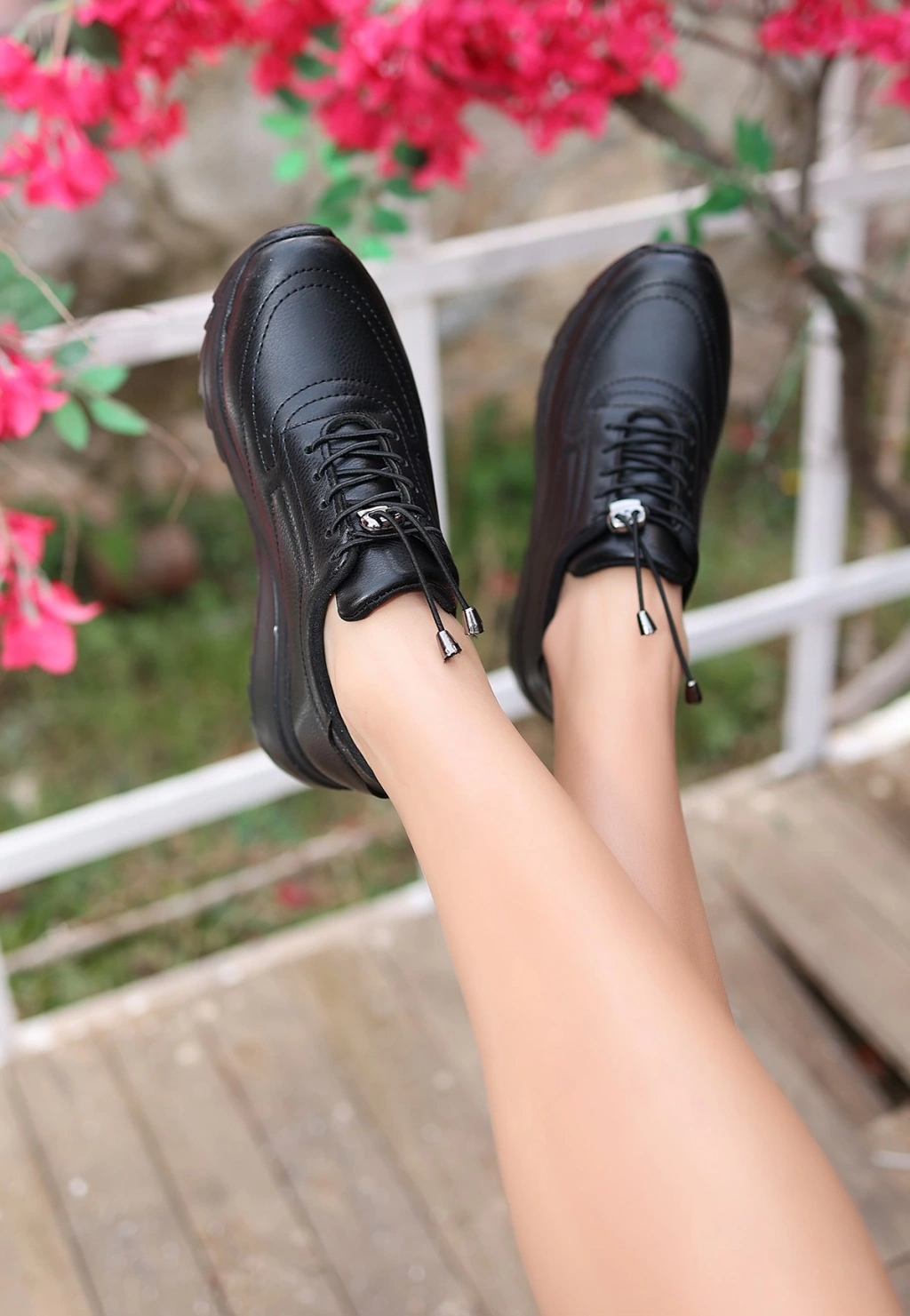 • Romy Siyah Cilt Bağcıklı Spor Ayakkabı